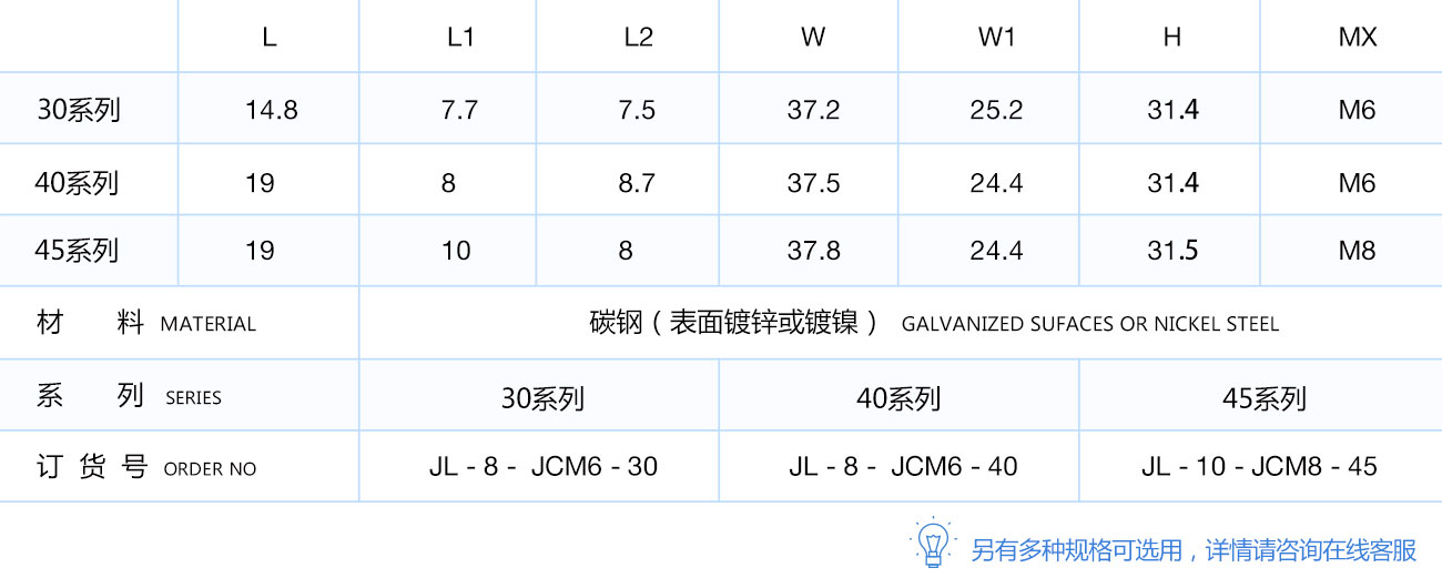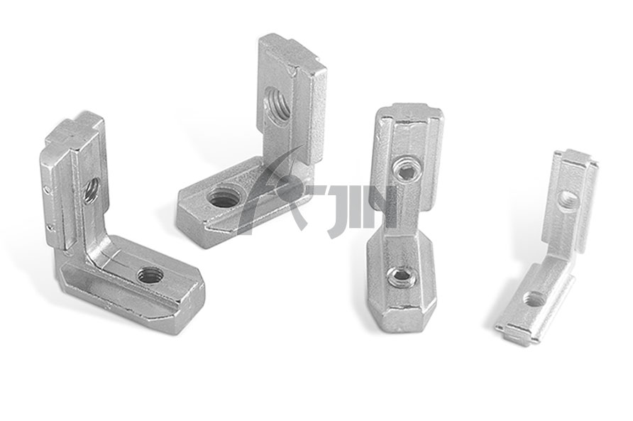 用于兩型材的直角連接,安裝時將其兩端分別插入型材槽坑內(nèi),將緊固螺絲鎖緊。根據(jù)型材的槽寬及連接方式請選用不同的角槽連接件。