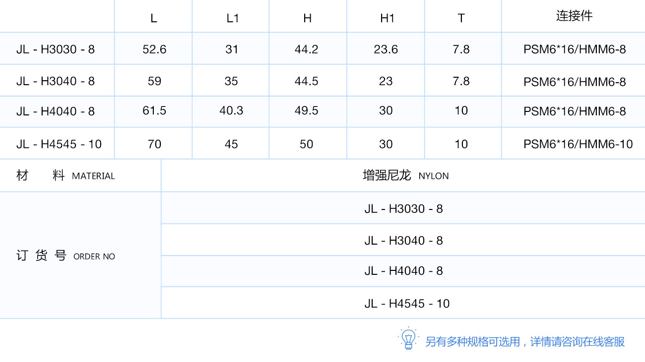用于連接型材與型材或板之間的活動(dòng)連接。連接螺釘及螺母塊需另配。