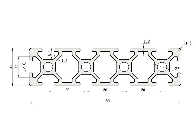 JL-6-2080E,6mm 槽寬工業(yè)鋁型材系列