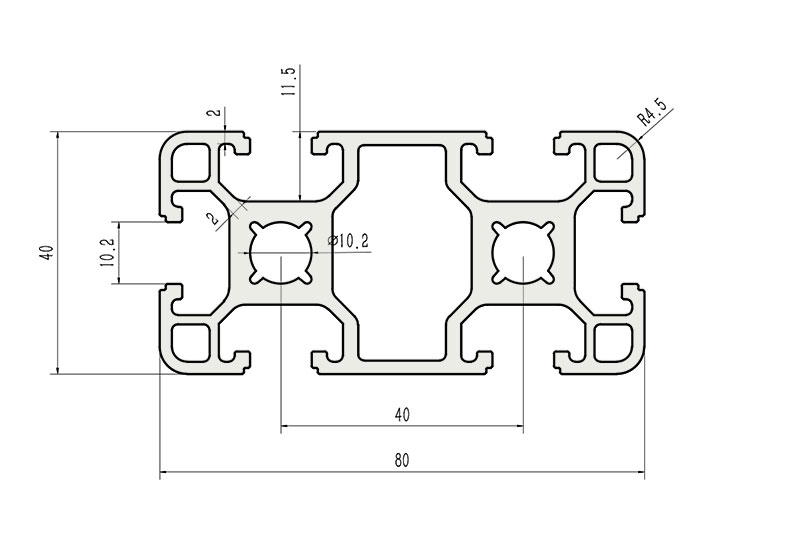 適用于應(yīng)力及強(qiáng)度較大的框架組合結(jié)構(gòu),它的外型采用圓角過渡,表面經(jīng)過陽極氧化處理,高雅美觀并抗腐蝕,它通常采用M8X20高強(qiáng)度專用螺栓加彈性扣件的內(nèi)部連接方式,堅(jiān)固而又可靠,是工業(yè)框架應(yīng)用較為廣泛的型材之一。